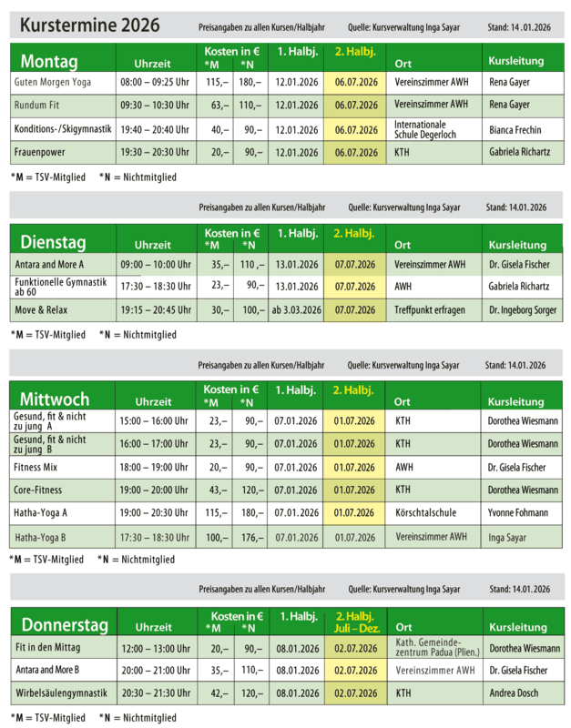 Alle Kurse können 3x kostenlos besucht werden bevor es zu einer Anmeldung kommt