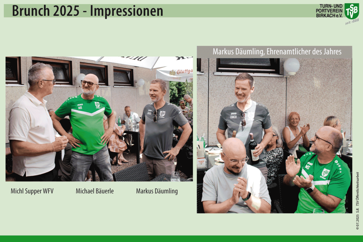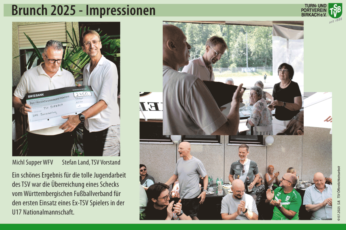 Am 29. Juni fand in der Vereinsgaststätte der traditionelle Sonntagsbrunch mit unseren Ehrenamtlichen Helfern und unserem Verwaltungsteam statt. Der Vorstand bedankte sich bei den langjährigen Mitgliedern, die in diesem Jahr ihr 25-, 40- und 50-jähriges Vereinsjubiläum feierten. Im Zentrum der Veranstaltung stand der Dank an alle ehrenamtlichen Trainer, Betreuer und Helfer. Im Jahr 2024 wurden hier über 80.000€ !! an Aufwandspenden ausgestellt.