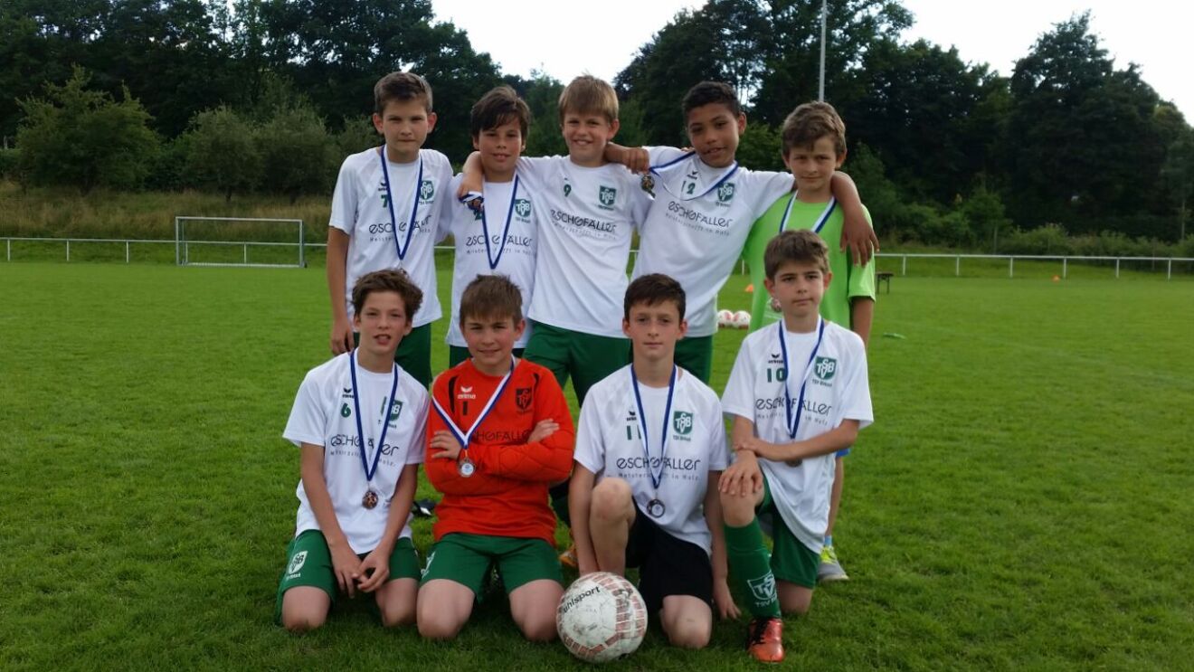 Am 18.07.2015 holte die E2 beim Jahrgangsturnier 2005 des SV Hoffeld in überzeugender Manier den ersten Turniersieg. In den Duellen mit dem TUS Stuttgart, SKG Botnang und dem SV Hoffeld spielte Jeder gegen Jeden zweimal. 5 Siege und 1 Unentschieden - das bedeutete mit 16 Punkten überlegen Platz 1. Teilweise mit Zauberfußball und immer mit guter Ordnung wurde der Turniersieg ungefährdet herausgespielt.