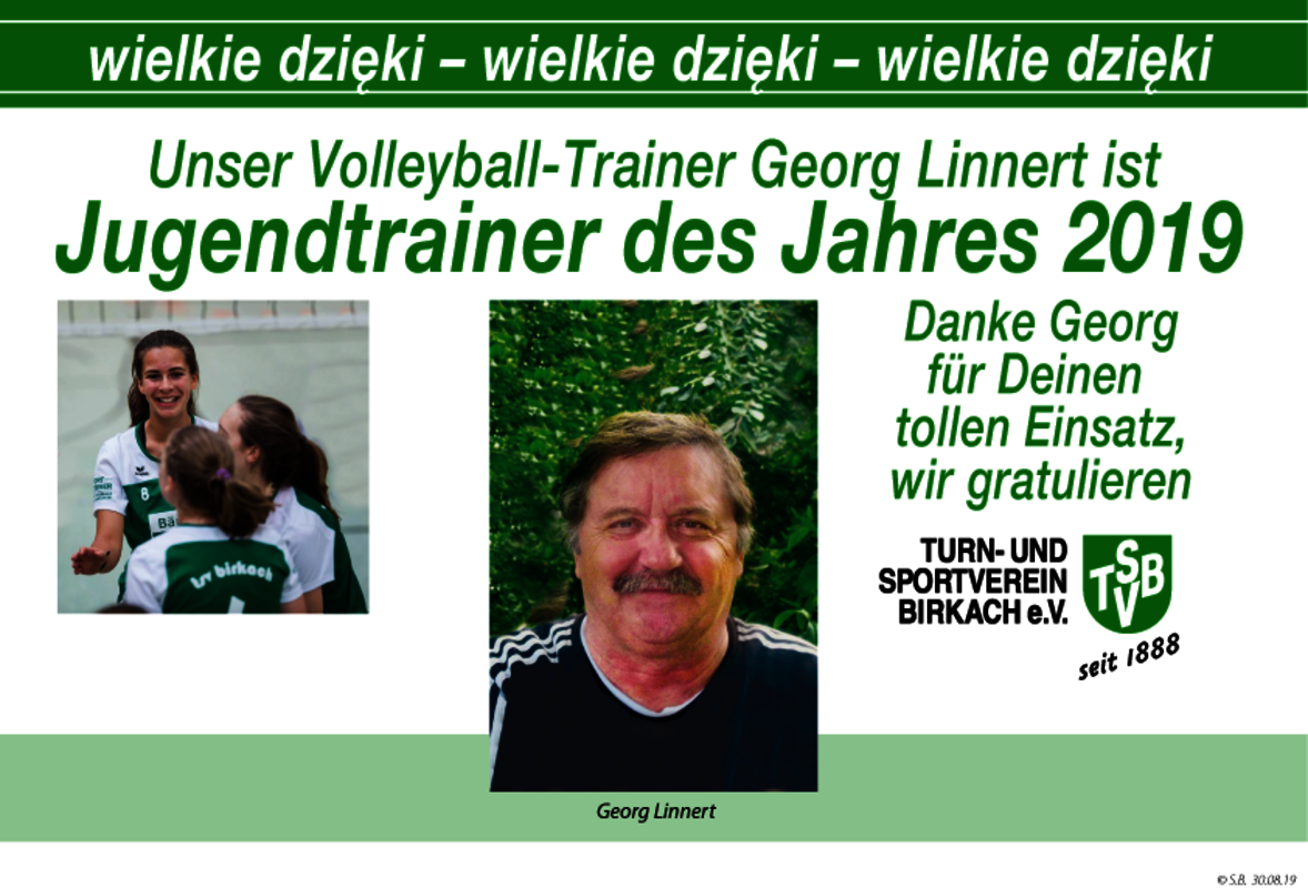 Der Freundeskreis des Württembergischen Volleyballs (FKWV) hat in diesem Jahr zum 15. Mal den Wettbewerb "Volleyball-Jugendtrainer/in des Jahres" ausgeschrieben. Das Rennen gemacht hat 2019 Georg Linnert, der seit 2013 zielstrebig und nachdrücklich mit seiner Arbeit im TSV Birkach begonnen hat.