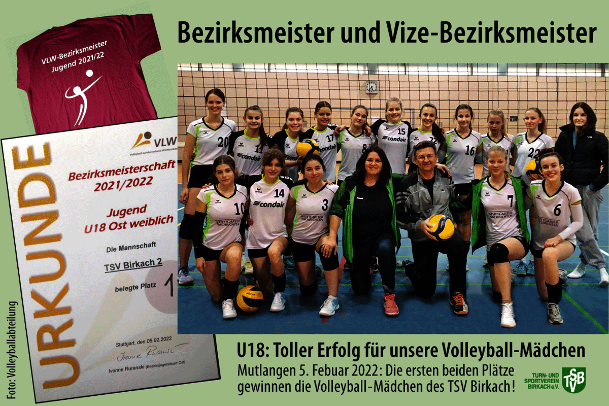 Volleyball Mädchen: Die beiden U18-Teams des TSV Birkach sind Bezirksmeister und Vizebezirksmeister. Ein toller Erfolg für die Volleyball-Abteilung