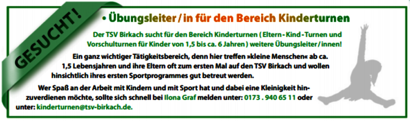 Der TSV Birkach sucht im Bereich Kinderturnen weiteren Übungsleiter/innen!